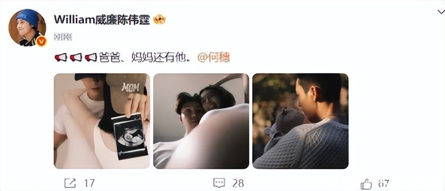 去年10月18日,他突然晒出与超模何穗的亲密合影,并配文“爸爸、妈妈还有他”,正式宣告二人已育有一子。