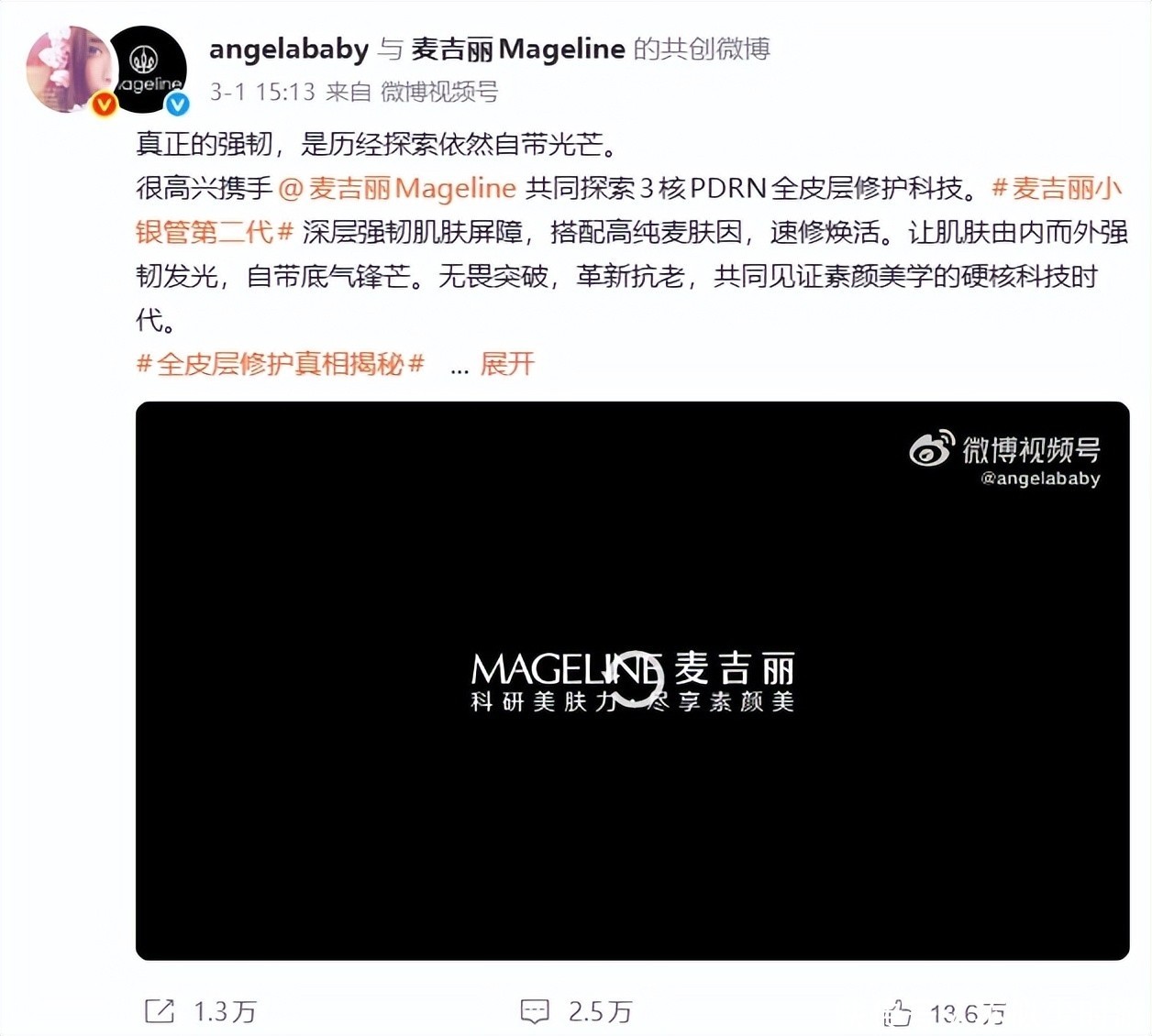 紧接着3月1日,她官宣全新护肤品牌代言人身份。